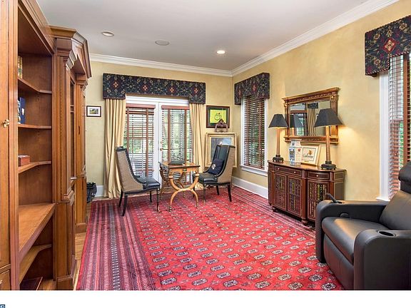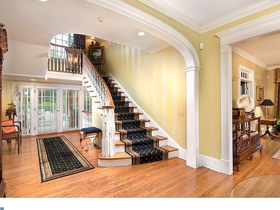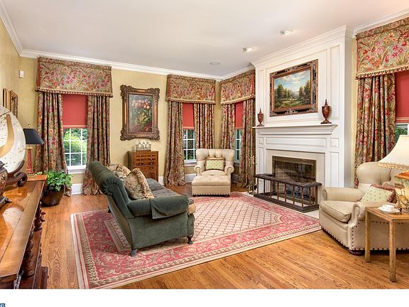 Charming 5 Bedroom, 4.3 Bath French country styled home in most desirable Harriton Farms, positioned on one of the largest lots with an end cul-de-sac location. Professionally and tastefully decorated with an eye towards easy and elegant living. Walk along the path across the well-manicured front lawn and open the front door to the large Foyer centered on a formal stair and highlighted by exquisite crown molding, 9 foot ceilings and opposing wide entrances to the formal areas of the home. To the right find the elegant Formal Living Room naturally lit by 4 large windows and focused on a brick wood burning fireplace with stone and carved wood surround that extends from floor to ceiling. This space extends to a private Study that can serve as an intimate gathering space or quiet escape. The Formal Dining Room with a Butler's Pantry offers the space and amenities needed for both elegant dinner parties and impromptu entertaining. The spacious chef's Kitchen provides a magnificent island workspace, granite countertops, stair to the second floor, pantry and top of the line appliances such as a Thermador 5 range gas stove, a Miele dishwasher and Sub- Zero Refrigerator. The Kitchen opens to a bright Breakfast Room with cathedral ceilings and steps down into the vaulted ceiling Family Room complete with brick fireplace with carved wood mantle and adjacent built in cabinetry. Ascend the grand stair and enter the Master Suite complete with a Dressing Room, His and Her walk-in closets, and a Master Bath with opposing His and Her vanities, sit-down shower, and massive soaking tub. The Second Level is completed by 4 other bedrooms, two with en suite Baths and two connected by a large Bath with separate vanities on either end of the room, a Laundry Room, and a large hall workspace. The finished Lower Level features wall to wall carpeting, a large room with a Screening Area with projector, a Billiards Area, and a Powder Room. One truly finds the entertainment center in the backyard. Walk out onto a carefully designed and beautifully landscaped oasis that makes this home the envy of Harriton Farms. Find a spacious porch equipped with two ceiling fans, custom bar with sink, refrigerator, and wiring for mounted TV, and a lovely outdoor Dining Area. This shaded suite overlooks a custom designed pool and hot tub surrounded by lounge chairs and thoughtfully placed plants and shrubbery. This 'at home' resort is ideal for entertaining large parties or dining al fresc