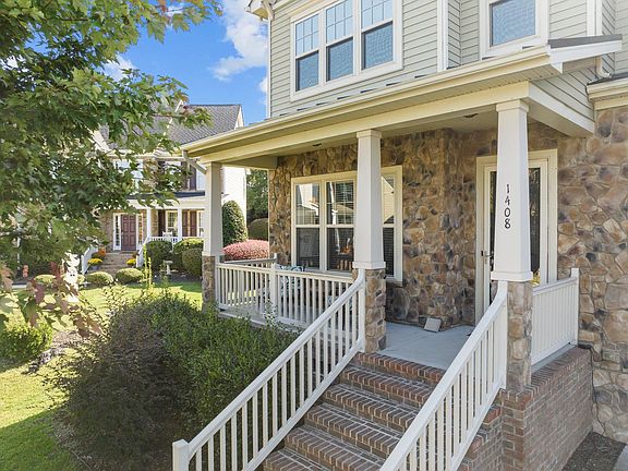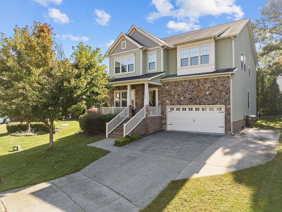 Hurry up! Beautiful home with all the spaces situated on a cul-de-sac in popular Northampton in Wake Forest. Kitchen features granite counters and stainless appliances including double oven and cooktop! Open floorplan with stunning cathedral ceiling and wall of windows in the family room. Back staircase with wrought iron spindles. New LVP downstairs. First floor guest suite! Upstairs is the primary bedroom with trey ceiling and bath with double vanity and walk in shower. 3 additional bedrooms PLUS a bonus room are also upstairs. The backyard has a deck and new patio that overlooks the HUGE side yard with plenty of room to play. Walk to Jones Dairy Elementary!