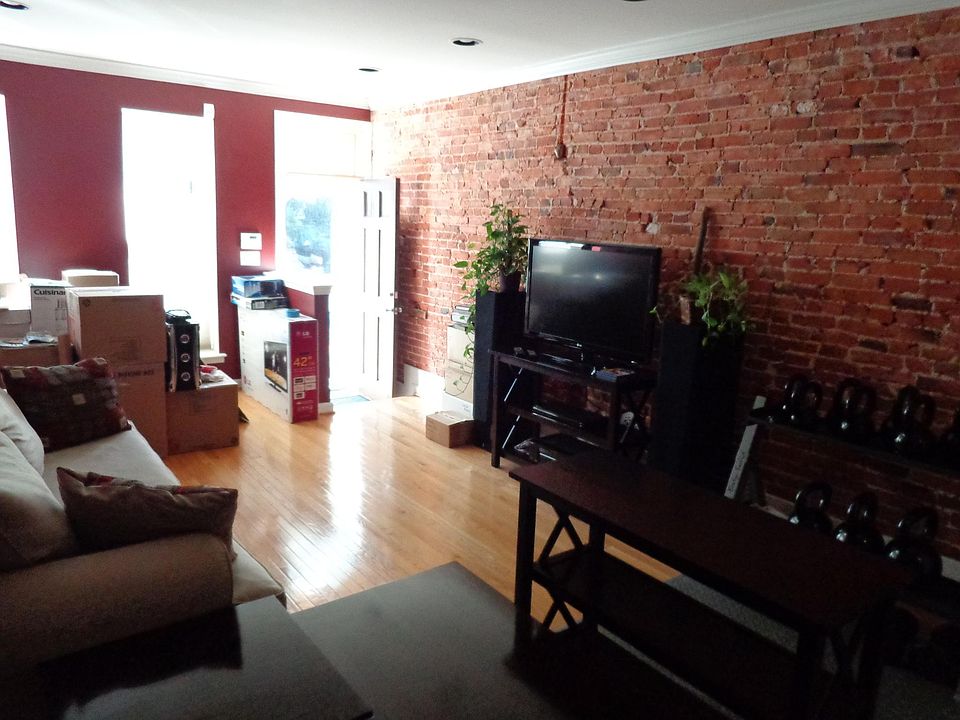 2 large bedrooms each with its own bathroom. Large deck off the 2nd floor for entertaining, large unfinished basement for storage. Hardwood floors and exposed brick.