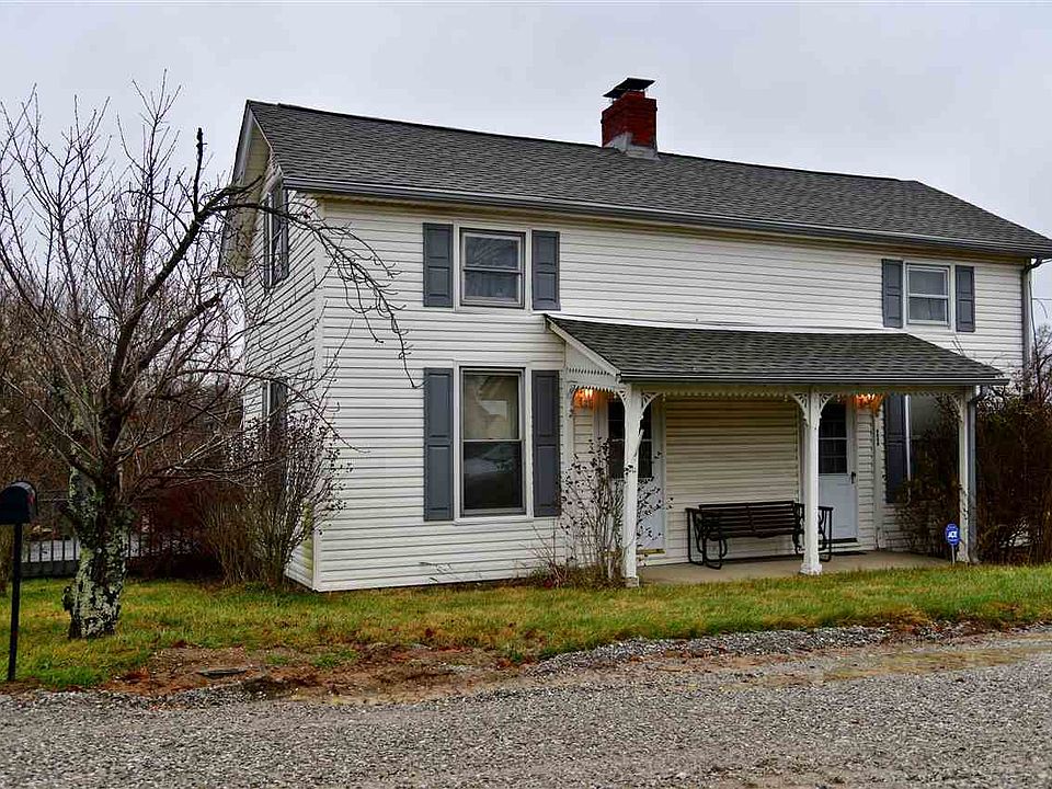 Charming 100+ year old historic home, loaded with character & situated on 5+ acres. 1st floor master suite w/ attached bath. Upstairs walk-through bedrooms. Large rooms & windows throughout. Eat-in kitchen plus dining room w/ counter bar. 1st floor laundry w/ built-in storage & utility sink. Newer roof & HVAC. Over-sized detached 2 car garage and 2 storage sheds w/ electric. Open green space plus wooded acreage. Endless possibilities & convenient location!