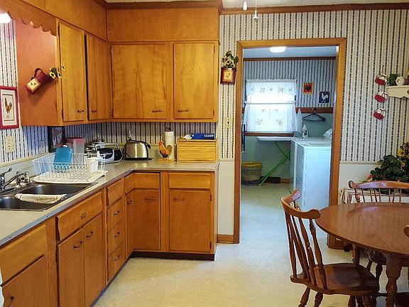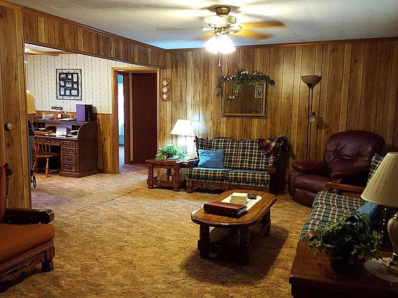 Well maintained Ranch style home. Large living room, 2 bedrooms 1 bath, Central heat with window air. Attached 1 car garage and detached 1 car garage with workshop.