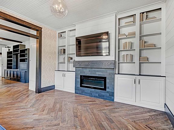 OPEN HOUSE Dec 7th, 2-5 PM. Come on down before the East Hill Holdiay Market @ Cordova Square Park Nestled in one of Pensacola’s most walkable and desirable East Hill–area neighborhoods, this beautifully restored 1930s home blends historic character with modern comfort. Original woodwork, doors, ceilings, and baseboards have been carefully stripped, stained, and refinished, preserving the craftsmanship that defines homes of this era. A reimagined coal-era fireplace anchors the living space, complemented by updated finishes throughout. The flexible layout includes three spacious bedrooms, each large enough for a king-size bed. One bedroom features a private exterior entrance and half bath, ideal for a guest suite, home office, or multigenerational living. The kitchen offers generous counter space with natural quartzite stone, deep storage, and efficient induction cooking, with gas service available if preferred. Major improvements provide peace of mind, including a new metal roof, newer HVAC, newer water heater, updated electrical, and well-maintained windows. An enclosed laundry area with conveying washer/dryer adds convenience. The fenced backyard functions as a private retreat with covered outdoor space and two storage sheds. Located within walking distance to Hollis Park and minutes to downtown and the beach, this move-in-ready home offers the full East Hill lifestyle and timeless 1930s charm.