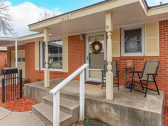 Beautifully updated home in quiet neighborhood! Real hardwood floors bring you inside to the first living room, complete with new ceiling fan, gorgeous window that allows lots of natural light and privacy, and built-in desk or extra eating space by the kitchen. The kitchen has lots of countertop and cabinet space, matching white appliances and very open to the formal dining and next living space. This big family room has a dramatic floor to ceiling brick fireplace, stained glass windows, and new ceiling fan. The roomy master bedroom is a suite with 3/4 bath and big closet. The other bedrooms are both nicely sized and have lots of natural light! Outside, the big covered patio is perfect for entertaining with ceiling fan, landscaped flowerbeds and a walkway to the handy storage shed. Conveniently located to I-40, I-44, Hilldale Elementary and only minutes to Lake Hefner and Overholser. Schedule your showing today!