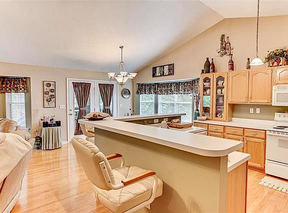 Don't miss this meticulously-maintained 3bd/2ba ranch with expanded two-car garage. The manicured lawn, landscaping and oversized, aggregate driveway set off this home's curb appeal. Vaulted ceilings, open floor plan, gas fireplace and gleaming hardwood flooring throughout showcase the Great Room.The Master Suite includes a large, walk-in closet, beautiful bay window, and a master bath with a double-bowl vanity and jacuzzi tub. Main floor laundry/mud room just off the kitchen. The kitchen features upgraded cabinetry, breakfast bar, pantry and tons of counter space. Adjoining the kitchen is a dining area set off with bay windows and French doors leading to the covered sun porch, perfect for enjoying the peace of summer from your own back yard. If you like to entertain, you won't want to miss the endless possibilities with this basement! Expansive basement includes gas fireplace, large bath with HUGE jacuzzi tub, "mess-free" aggregate flooring, and French doors leading to the back yard.