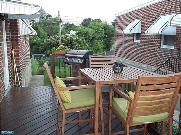 Fox Chase twin ranch with a full sized side deck, side yard and front patio. Enter this well maintained home which features a formal living room and dining room with wall to wall carpet over hardwood floors. Newer eat-in-kitchen with recessed lighting , stainless steel dishwasher, microwave and refrigerator included. Three bedrooms and a center hall tile bath complete the main floor. Downstairs there is a huge family room with centralized heating, a custom built wet bar, an open office area, a half bath, big storage closet, separate laundry room and a one car garage. Replacement windows throughout, central air and a freshly coated rubber roof.