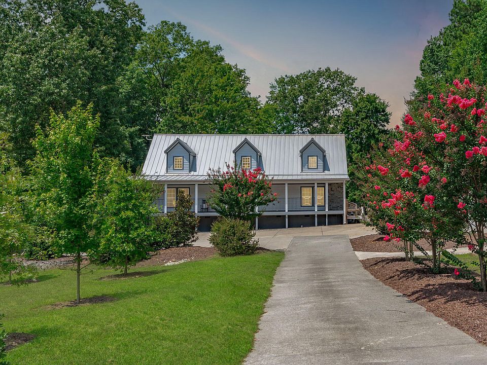 Landscaped lotCovered front porchDetached two-car garageMultiple outbuildingsWalk in showerCircular drivewayNewer metal roof