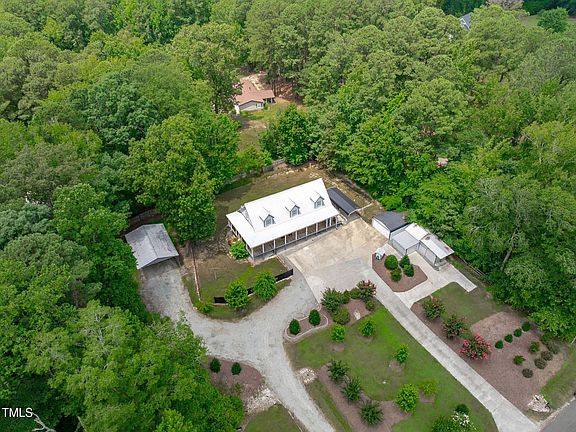 Private Cape Cod Retreat on Nearly 1 Acre. No HOA! Detached Garage, RV Parking, and Multiple Outbuildings! Tucked away in the trees on a sprawling .97 acre homesite, this charming Cape Cod offers a rare combination of privacy, storage, and freedom all with no HOA or restrictive covenants. A circular driveway, covered front porch, and landscaped lot set the tone as you enter this beautifully maintained property just minutes to Hwy 540 and Hwy 64. The home features a main level primary suite with a sitting room or office, and a spa like bath with a freestanding soaking tub, granite topped dual vanities, and walk in shower. Upstairs, two additional bedrooms each have their own full bathrooms, and a versatile loft/bonus area makes a great home office or rec room. The gourmet kitchen is equipped with Wolf double ovens, 6-burner gas range, SS appliances and custom cabinetry, all open to the main living and dining areas. What sets this home apart? Detached two-car garage, covered RV parking, two additional storage/workshop outbuildings, separate garden hose shed with power and water access, newer metal roof, fenced backyard with wooded privacy, gravel drive with ample parking for trailers, boats, or work vehicles. Beautiful aerial views show just how tucked away and peaceful the property is! Whether you're seeking room for hobbies, a peaceful homestead, or space to park all your toys this Apex property delivers unmatched versatility in a location that keeps you close to everything.