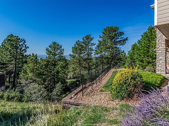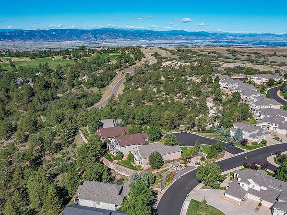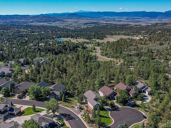 This location is 2nd to none. Tucked back in a private cul de sac w/ incredible Pikes Peak & mountain views, backing to open space, lush landscaping & trees make this a truly exceptional home. Serene & inviting. All your landscaping is taken care of for you, just relax & enjoy. The free-flowing floor plan features a classic interior & provides a main floor primary & secondary bedroom, flow-through living/dining area, home office & large entertainment spaces. This thoughtfully designed, eat-in kitchen has been well-maintained to include a built-in oven, corian countertops, breakfast bar, wooden cabinetry, recessed lighting, built-in microwave & a glass cooktop. Enjoy that morning cup of coffee at the kitchen table while mesmerized by the views. You will find vaulted ceilings, picturesque windows & full of natural light which makes this a place to call home. The generously-proportioned main suite is the perfect place to dream & boasts an ensuite bathroom, large walk-in closet and impressive mountain views. Charming & classy, the primary bathroom includes a separate shower, deep soaking tub, double sinks, tile countertops & flooring. Adding to the home's charm are well-maintained gleaming hardwood floors throughout the family room & kitchen. This offer only gets better w/walk out basement ready for your finishing touches. Laundry/mud room on main level. Relax in the wonderfully secluded suburban getaway that features a large deck outdoor and rolling green lawn. Perfect for entertaining guests at a summer cookout. Look no more. You've found excellent active living. Nestled in a desirable Pine Ridge @ Castle Pines North neighborhood. An easy stroll to walking & biking trails, parks & playgrounds, nature, local shops, restaurants & supermarkets. All the conveniences you could possibly need are just minutes away. Located close to highly regarded public schools. Enjoy a spacious 2 1/2 car attached garage. See for yourself what this home has to offer.