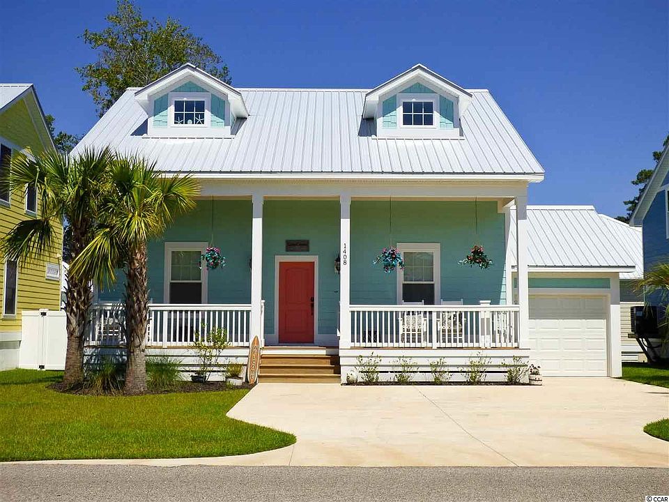 This low country home is 5 blocks from the ocean. It has an aluminum roof, hardi siding, custom window treatments, large country style front porch, outside shower, 1 car garage, granite, sprinkler system, and more. The master bedroom is downstairs and the 2nd and 3rd bedrooms are upstairs. This home is not in a flood zone or an HOA and is situated in the middle of similar style homes.