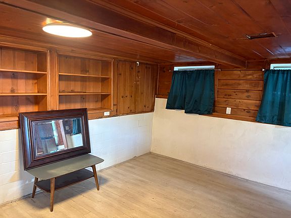 Duplex has basement unit for rent at 1408 Portia Street, with a 1 year lease. Duplex is perched high on a private knoll. 1 bedroom, 1 bathroom. 525 square feet. Furnished with stove and refrigerator/freezer. Vinyl floors throughout. Light and bright with windows and wood paneling. Plenty of storage space. Main access walkway/stairs appear to be located on adjacent property.