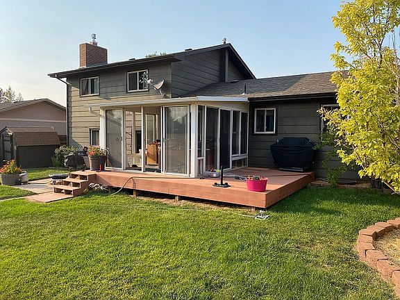 Nicely updated and well cared for North area family home. This quad-level home with two-car garage is located 4 blocks from the new Slade Elementary school and not far from Laramie Middle School. The home has 4 bedrooms and 2 ½ baths amongst four separate living levels offering approximately 2,400 finished square feet. The main floor has separate living, dining, and family room all accessible from the renovated kitchen. The kitchen has updated cabinets with granite countertops and all stainless-steel appliances, including a gas cook top/range. The kitchen also includes bar style seating as well as an eat-in area with patio door access to the nicely tiled sun room. Hot tub included if preferred by buyer! Upstairs includes a large master bedroom with full master bath, full closet and lots of natural light with two windows as well as a window in the bath. Two additional bedrooms and a full bath are included upstairs. All bedrooms upstairs have built-in closet organizers. The main family room includes additional patio door access to patio, good natural light and a gas fireplace with brick/stone hearth. A ½ bath is located just off the family room as well as access to the two-car garage. The basement is newly remodeled and includes the 4th bedroom and an additional family room with plenty of natural light. A full laundry and storage room are included with the mechanical room and includes built in storage and additional countertop with cabinets. The yard is very nicely kept and includes a lot of nice landscaping and perennial plants. A large patio and composite deck offer a lot of outside space to enjoy the Laramie summers. There is alley access as well as a shed for storage. Additional Details: • All windows are updated vinyl and in good shape • New roof was installed in 2012 • New flooring throughout • Forced air furnace with programmable thermostat • Extra storage area in garage • Extra parking space for RV/Boat/Trailer off side of garage