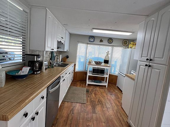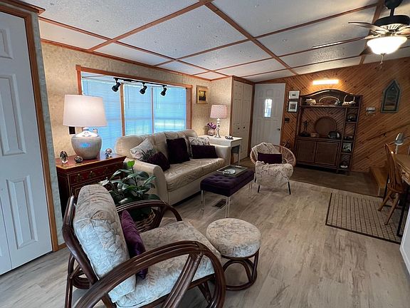 Come see this charming coastal property with mature landscape, a large backyard, and a fully covered carport. This bright cheery beach home is flooded with sunlight through 2 sets of sliding glass doors, adjacent to the dining/kitchen area, which creates and inviting open living area. This property is spacious and is the perfect place to comfortably entertain family and friends on the screened porch or the side deck where you can relax and sip iced tea. This lovely two-bedroom one bath home is partially furnished and has an oversized family room that could double as a 3rd bedroom with 2 closets and leather sleeper sofa which is perfect for overnight guests. The primary bedroom has a balcony that overlooks a lush private green space and the bath has a walk in corner shower. This property has vinyl and tile flooring throughout, and designer shiplap and beadboard finishes. It also includes a convenient laundry area. Notable features: New fence, Newer dishwasher, Newer Air conditioner, New kitchen blinds, Metal Roof, and Ceiling fans throughout. This property is in the safe beach neighborhood on th This property is in the safe beach neighborhood on the shores of Perdido Bay only 15 minutes from the Gulf of Mexico and 5 minutes from the Lillian boat launch. There is something for everyone. Owners enjoy membership with low POA dues of $74/mo and all of the amenities: two clubhouses to host events and club meetings, year-round swimming pool , tennis courts, pickleball, basketball court, fitness facility, playground, public shower area, shuffleboard court, and nature trails. You can join the community-organized activities like Bingo, card and game nights, book clubs, garden club, and also enjoy group travel opportunities. If you like to relax, you can spend the day at the Spanish Cove beach, fishing from the 500-ft pier, or just enjoying a stroll in your golf cart around this friendly golf cart community. This property is a must see.
