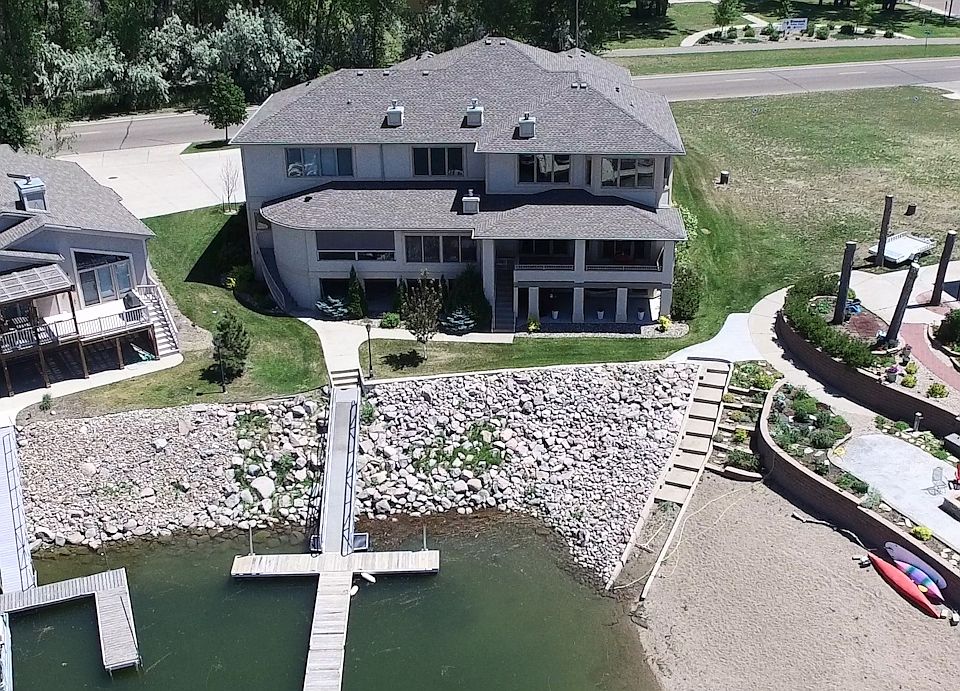 JUST REDUCED! "Click on the multimedia or video tour." Experience care free living in this beautiful Southport waterfront twin home. This gourmet kitchen is equipped with double ovens, cook top, stainless steel appliances, custom maple cabinetry, & granite countertops. There are beautiful maple hardwood floors throughout the main floor, gas fireplace, & 2 separate sliding doors to enjoy the outdoors. Also located on the main are a bedroom suite & laundry room. Take the circular staircase or the elevator to the bright upper level where you'll find two spacious master suites & a loft w/ sliding glass doors to the second covered deck. The lower level features a wet bar, spacious rec/family room, bedroom, & bathroom. Relax on the covered tiled deck overlooking the bay & Missouri River. The shared dock has plenty of space for your watercraft & is just a short trip to the river. The association handles lawn care & snow removal. Located steps away from the recreation path & golf course.
