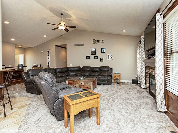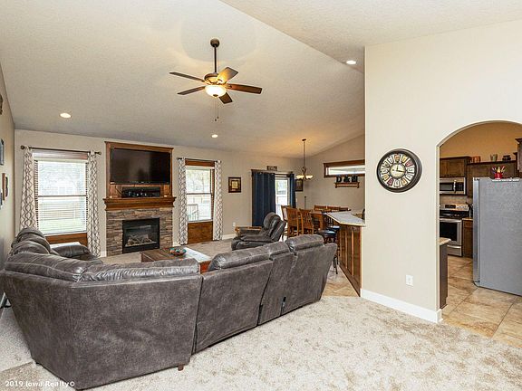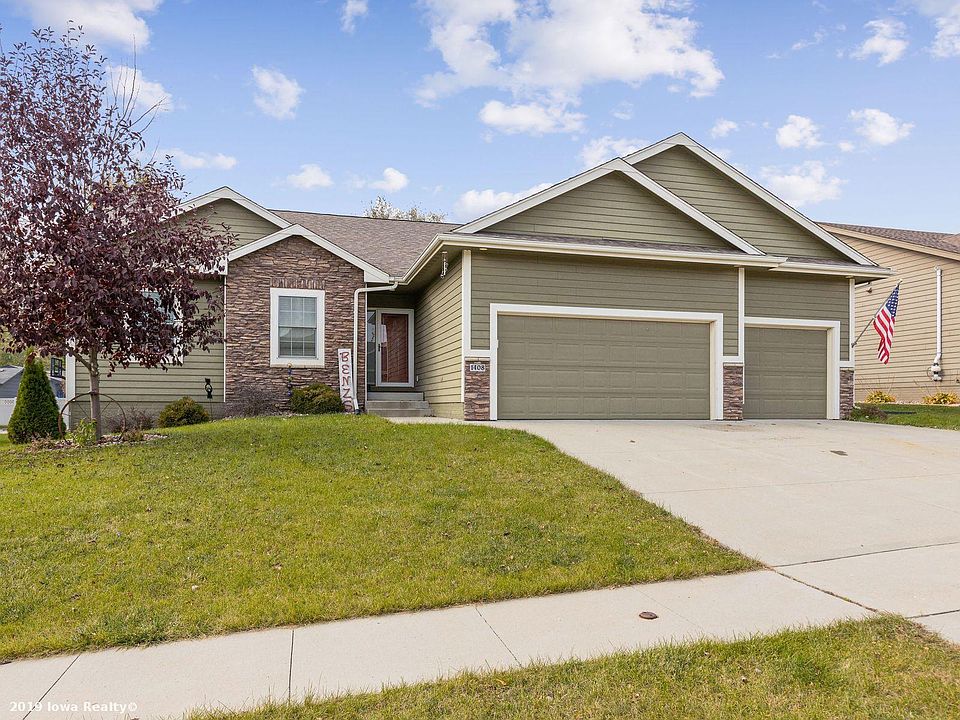 4 bedroom, 3 bathroom ranch in prime location Great room with fireplace and vaulted ceilings. Kitchen includes granite, tile backsplash, and stainless-steel appliances. Large master suite with walk in closet. Ensuite includes double vanity and tile shower. Finished lower level boasts wet bar, full bathroom, bedroom, room for a pool table and the rec room is set up for a projector. Exterior features include an attached 3 car garage, large covered deck, fenced yard, 7x12 custom shed attached, and mature trees. Situated blocks from the aquatic center, Evans Park, and the ADM High School. Minutes to I80 make commuting a breeze