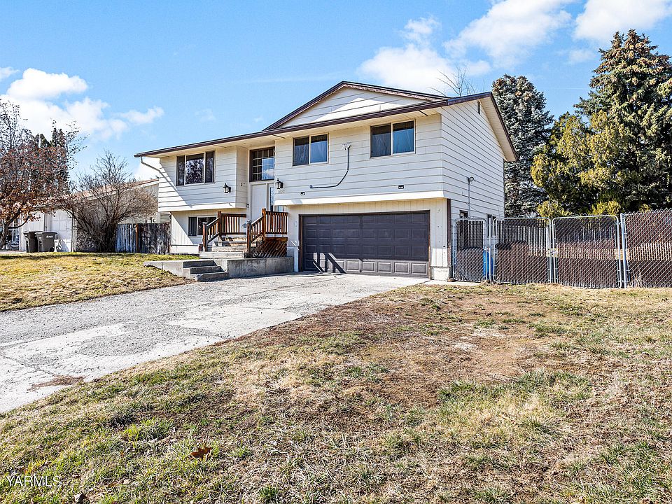 Welcome to this charming split-level home that boasts three bedrooms and two bathrooms. As you enter the front door, you'll immediately notice the open concept living area that's perfect for hosting friends and family. The main level features a spacious living room with large windows that allow plenty of natural light to flood the space, and a covered back porch that's perfect for enjoying Yakima evenings.The living room flows seamlessly into the dining area, which is adjacent to the kitchen. The kitchen features great appliances, plenty of cabinet and counter space, and a breakfast bar that's great for quick meals or casual dining.The upper level of the home is where you'll find the three bedrooms and the first bathroom. The lower level of the home is a versatile space that can be used in a variety of ways. It's perfect for a home office, playroom, or additional living space. The lower level also has a laundry area.Outside, the home features a large backyard that's perfect for entertaining or relaxing. The backyard is fully fenced, providing a safe space for children or pets to play. The backyard also includes a separate fenced area that could be used for a dog run or garden area.Updates include a new water heater in March of 2022, new heat pump and furnace in March 2023 and new professionally installed flooring in fall of 2021.This split-level home is located in a quiet neighborhood that's conveniently located near shopping, restaurants, and entertainment. With its spacious living areas, numerous amenities, and convenient location, this home is the perfect place to call your own.