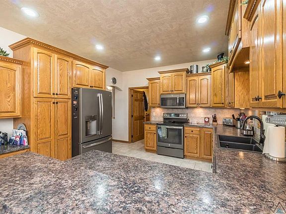Awesome Ranch home that is needing a new family! This Ranch w/bright garden windows in the lower level features 5 large bedrooms, 3 full baths, huge heated 3 car garage & wonderful 19x11 covered deck for the upcoming season. With almost 3400 sq ft finished along with a large master suite, whirlpool tub, kitchen has plenty of cabinets & counters, newer stainless steel appliances, desk area, formalish dining area, tray ceilings accented w/faux painting, living room w/gas fireplace, large family room, a custom built bar area with fireplace(perfect for entertaining), stairs from basement to garage. Many newer items like air/furnace 2017, garage (offers hot/cold water, garage heater, floor drain), new shingles 2016, new gutters 2017, outside painted 2015, newer carpet & professionally painted, remodeled basement in 2014. Very close to Memorial & Discovery Schools, bike path, entertainment, malls, shopping, parks, outdoor activities, restaurants & so much more Sioux Falls Westside offers.