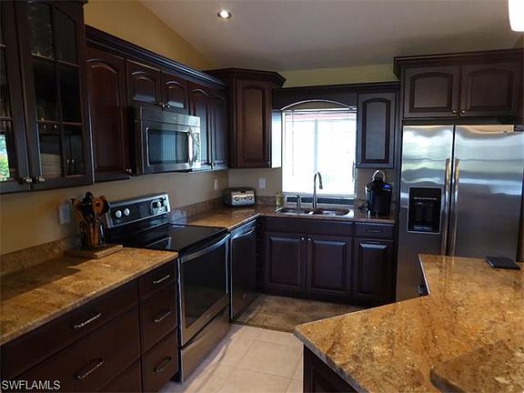 Beautifully renovated gulf access pool home with preferred southern exposure. Exceptionally nice kitchen with new raised wood panel cabinets, upgraded granite counters and stainless steel appliances. Perfect for entertaining, this great open design incorporates the living, dining and kitchen into one large great room with cathedral ceilings and pocket sliders leading to an expansive outdoor living area. It just keeps getting better with the composite decking over the captains deck and wrap around dock. Other updates include: renovated master bath and shower; new carpet and tile floors; professional landscape curbing; security system with cameras; whole house re-pipe; and new A/c in 2014. Your going to love entertaining in this house!