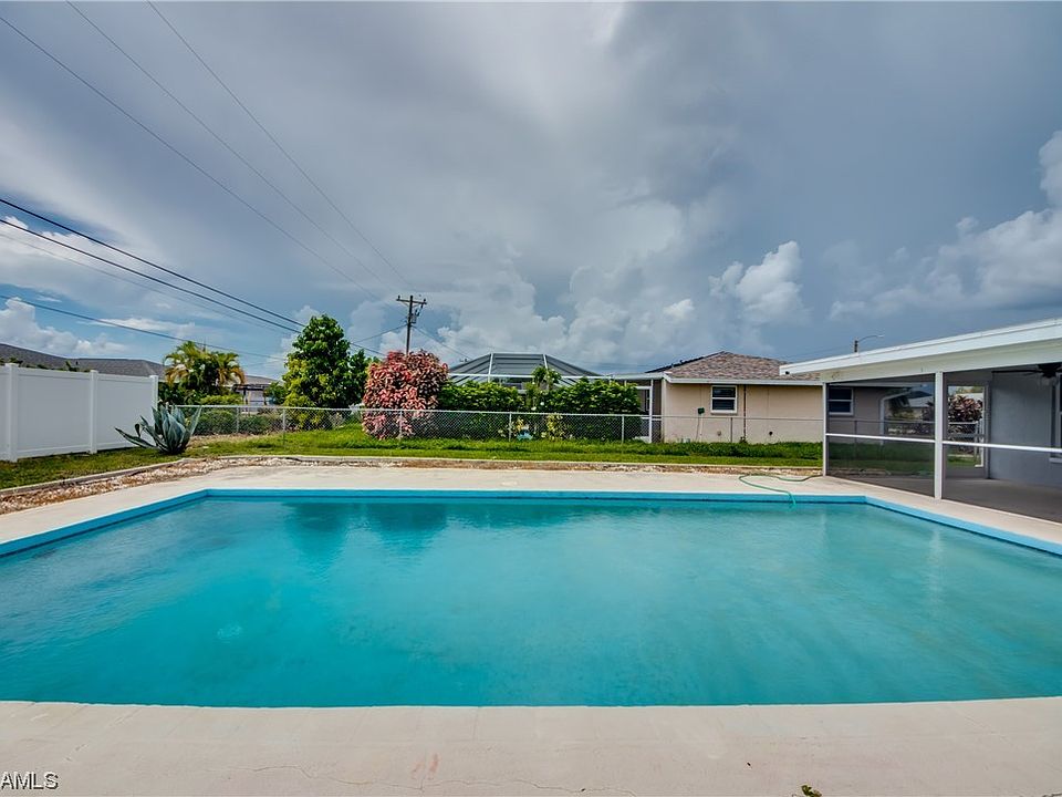 Back on the market … BUYER FAILED TO OBTAIN FINANCING! Not many opportunities like this hit the market! Nestled in a great neighborhood of well maintained off water and gulf access homes. NEW SHINGLE ROOF 2021, flat roof replaced in 2020, new interior and exterior paint 2020 and new kitchen & laundry room appliances in 2020. Enjoy the OVERSIZED and extra deep swimming pool with fenced yard. A block party size swimming pool ready for ALL of your family and friends! Convenient location and quiet neighborhood that is minutes from EVERYTHING important to you! Light, bright and open floorplan. Ready for your personal touches to make it your home! Super easy access to the Veterans Parkway corridor and Cape Coral Pkwy for shopping, dining, entertaining and more. If you like salt water fishing and boating, the public boat launch is minutes away. Freshwater fishing & boating has nearby boat ramps too! If you like to golf or go to the beach ... it’s an easy drive. It's all here for you! NO FLOOD INSURANCE required, NO HOA, NO ASSESSMENTS. Just affordable, clean and simple living found here! NO flooding from Hurricane. Come discover our amazing southwest Florida lifestyle! Free snow removal!
