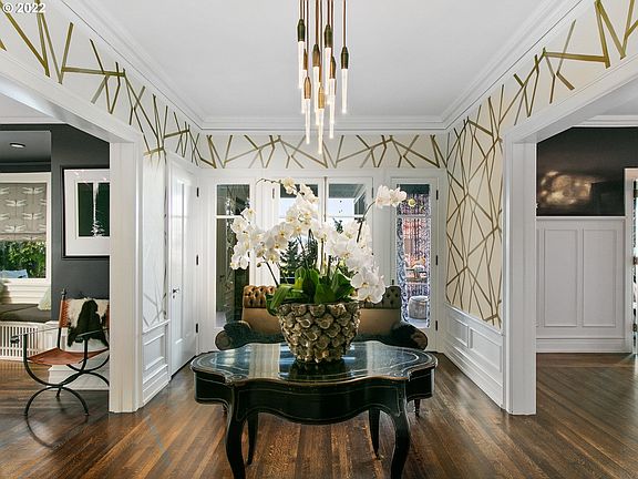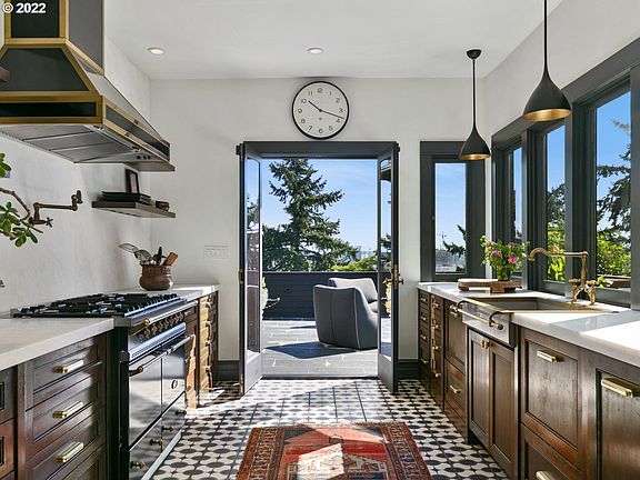 Portland Heights renovated Colonial Revival w/city & mtn views from almost every room. 6,588 sqft:5 beds, 4.5 bath, sunroom, family rm & exercise rm. High-end designer fixtures, tile, flooring, countertops & wallpaper. Restored historical details w/ease of today's modern amenities. Meticulously updated for entertaining w/glass French doors in kitchen leading out to expansive patio space w/a privacy wall, Lacanche gas range & integrated appliances. Only blocks from MAC, Lincoln High & NW 23rd. [Home Energy Score = 1. HES Report at https://rpt.greenbuildingregistry.com/hes/OR10193919]