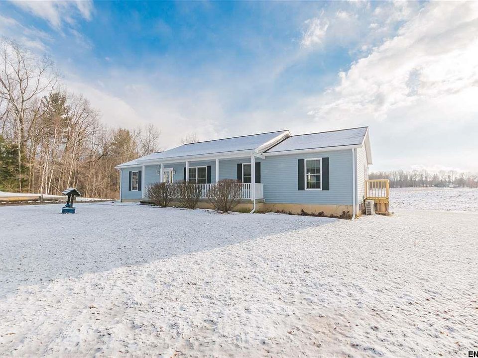 Lovely 3 bedroom ranch with open floor plan located on over 10 acres featuring large master suite with soaker tub. Features include: SOLAR panels for energy savings, Culligan water softener, walk in closet, appliances in excellent condition, central air, 16 x 28 large deck with views of acreage. 18 miles to Ballston Spa Tech area. Affordable country living at its best! A must see. $2000 Seller credit towards new carpet at closing. USDA $0 down 100% financing home