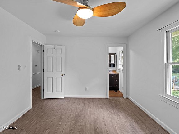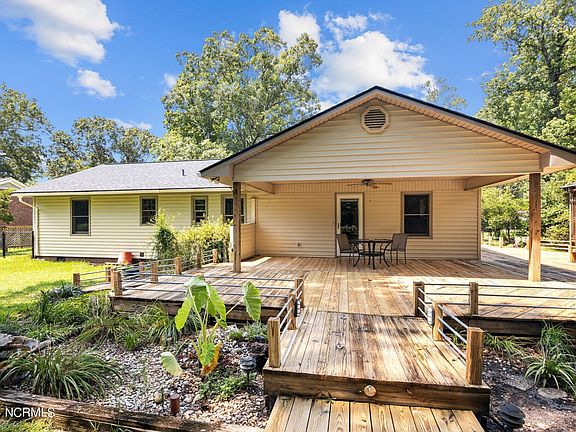 Discover comfort and convenience in this charming 3-bedroom, 2-bathroom ranch home located in the desirable Kings Row neighborhood of New Bern. The bright and spacious living room welcomes you with abundant natural light, perfect for both relaxation and entertaining. The kitchen is a culinary delight, offering ample cabinet and counter space, along with an inviting eat-in dining area for casual meals. Retreat to the owner's suite, where you'll find a walk-in shower and a luxurious soaker tub, ideal for unwinding after a long day. Two additional guest bedrooms and a full bathroom complete the interior, providing plenty of space for all. Head outside to the massive deck, perfect for grilling and enjoying the serene views of the private backyard. With its prime location just minutes from Historic Downtown New Bern and Carolina East Medical Center, this home offers the perfect blend of tranquility and accessibility. Don't miss the opportunity to make this lovely ranch your own! Call us today to schedule your private tour.
