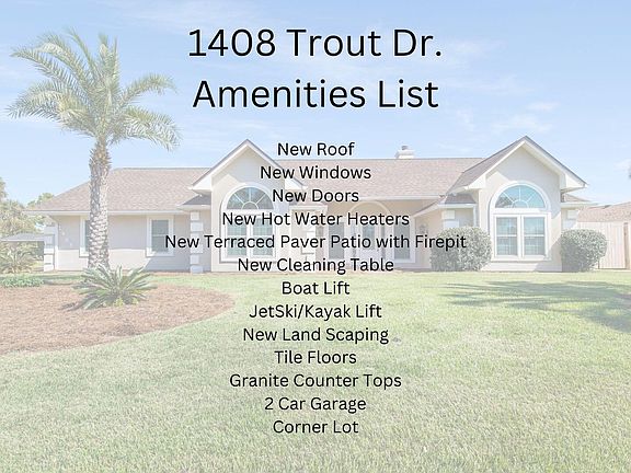 Gorgeous 4 Bedroom 3 1/2 Bath Canal Front Home in Bay Point! Inside, the home features a split floor plan with mostly tile throughout. The large sunk-in living room has vaulted ceilings and is equipped with French Doors that open up to overlook the pool deck and canal. Off the main living area is the large galley kitchen featuring granite countertops and stainless steel appliances, is accompanied on each end by a large formal dining room and a breakfast nook. The Master Suite features tray ceilings, large walk-in closet, double vanity, and large walk-in shower. Outside, the large screened in porch overlooks the pool deck, canal, and boat lift. This beautiful home has much to offer! For the full list of upgrades and amenities such as new roof, windows, and doors, please see photo section.