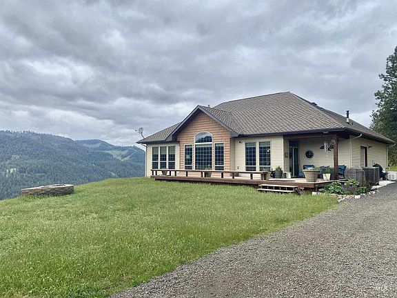 If you are searching for a custom single-level home with some of the most magnificent views in Idaho, you have found it! This stunning 2-bedroom 2 bath home features hickory hardwood flooring, a stacked stone gas fireplace, a vaulted tongue & groove ceiling in family room with breathtaking views. Family room also has a built-in entertainment center & bookcases. The office could easily serve as a third bedroom if needed. An open floor plan features a kitchen with stainless appliances, quartz counters, an appliance garage, two pantries, & on-demand hot water. The main suite has spectacular views & a walk-in closet. This property also has an amazing finished shop complete with a wood stove and half bath. From the large Timbertech back deck, you can enjoy your wood firepit and the abundant wildlife that call this beautiful scenery home. An 8-10 GPM well is another bonus. Check out features of this well-maintained home in Special Features document. Don't miss the aerial video of this special place!