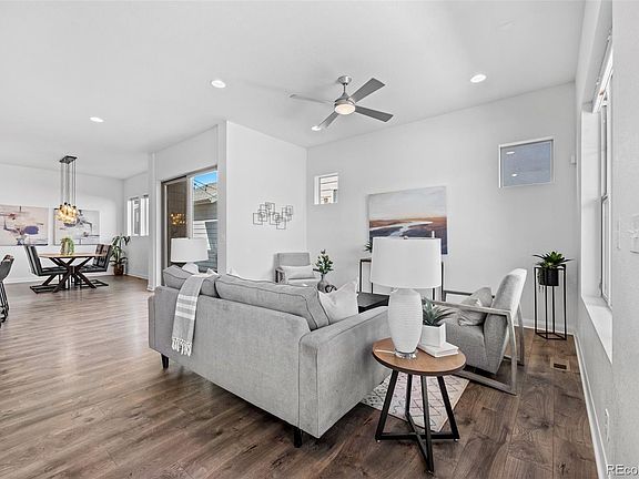 This stunning and modern David Weekley Home offers a perfect blend of contemporary design, smart features, and a convenient location. Upon entering, you'll be greeted by an open floor plan that seamlessly connects the living, dining, and kitchen areas. The natural light flowing through large windows creates a bright and inviting atmosphere. The kitchen boasts a large kitchen island, perfect for both cooking and entertaining guests. Upstairs features a large primary bedroom complete with a 5-piece bathroom and massive walk-in closet, plus two additional bedrooms. The basement features stained concrete floors, adding a touch of industrial edge to the space. Outside, the back patio has been extended with Trex decking, and the yard maintenance is made simple with turf, a popular option in the neighborhood. Smart features already installed include a Ring doorbell, garage opener with video and MyQ automation, Nest thermostat, and Rain Machine smart irrigation. Midtown provides great access to popular neighborhoods like LoHi and downtown Denver, where you can explore trendy restaurants, vibrant shops, and exciting entertainment options. Additionally, the nearby highways provide easy access to the mountains, allowing you to escape to breathtaking outdoor adventures with ease.