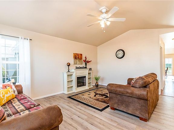 Wonderful 1 level home with ideal floor plan. Living room offers vaulted ceilings and new flooring. 3 bedrooms. Master has large walk-in closet and private bathroom with double sinks. Large 2-teir island in kitchen with tons of cupboards and counter space. Dining room walks out to concrete patio. Private vinyl fence, attached garage, new paint throughout and move-in ready!