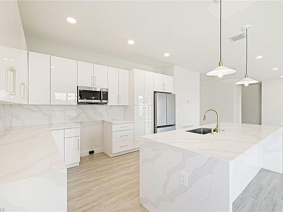 New contemporary home in Fort Myers. This move in ready 3 bedroom, 3 bath, 2 car garage home offers an open concept design with modern finishes. The home features hurricane impact windows and doors, and is solidly built on a stem wall foundation for added protection and stability. All appliances are included, The large master bedroom is equipped with a custom walk in closet. The kitchen opens into the living and dining areas, creating a comfortable space for entertaining or daily living. Includes a 1 year builders warranty. Built for style, comfort, and convenience.