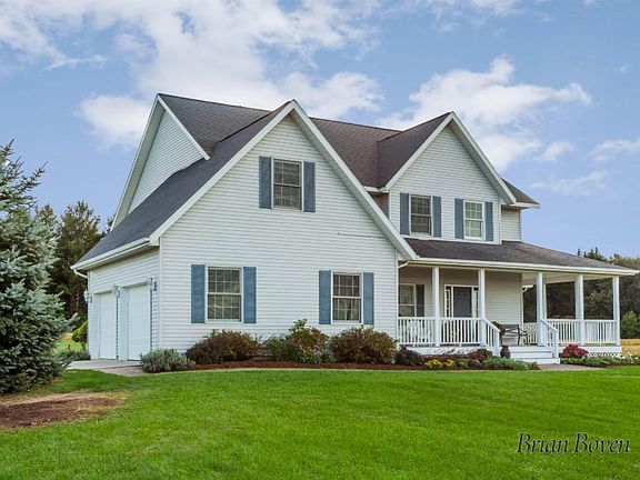 ENJOY PEACE AND QUIET ON 10 ACRES IN BEAUTIFUL APPLE COUNTRY WITH THIS 4 BEDROOM, 2.5 BATH HOME IN BELDING. A SHORT DRIVE TO LOWELL, ROCKFORD, GREENVILLE AND G R. INSIDE THIS OPEN FLOOR PLAN YOU WILL FIND 20 FT VAULTED CEILINGS IN THE LIVING ROOM AND PLENTY OF WINDOWS POURING NATURAL LIGHT WITH BREATHTAKING FARMLAND VIEWS FROM NEARLY EVERY WINDOW. MASTER SUITE INCLUDES VAULTED CEILINGS,JACUZZI TUB, WALK IN SHOWER, HIS AND HER VANITIES AND A LARGE WALK IN CLOSET. SPACIOUS KITCHEN WITH HUGE WRAP AROUND ISLAND AND BREAKFAST BAR. LARGE UPPER BONUS ROOM. MAIN FLOOR LAUNDRY WITH SINK AND CABINET/COUNTER SPACE. 2 CAR ATTACHED GARAGE. ENJOY YOUR MORNING COFFEE ON THE HUGE WRAP AROUND FRONT PORCH WITH NOTHING BUT BEAUTIFUL FIELDS AS FAR AS THE EYE CAN SEE. A PERFECT HOME FOR THE GROWING FAMILY.