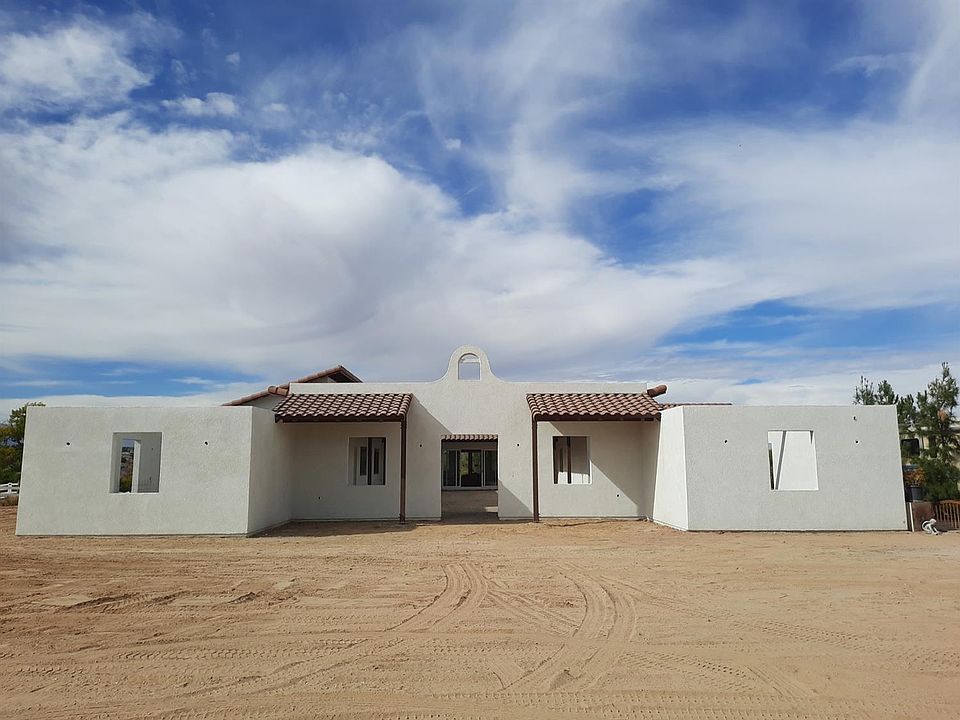 This special home is a reproduction of Baja Governor Roberto de la Madrid's infamous hacienda. New and luxurious, the 2850 SF, 3 bedroom 2.5 bath gem is a dream to own. The thoughtful floor plan allows for easy addition of 2 bedrooms, a bath, more living area and another 2 car garage. LOCATION! On 3.2 acres of valuable land on prestigious Riverside Drive. Backing up to the Mojave River with breathtaking views of the forest, sunsets and the snow-capped Wrightwood mountains. Night time brings distant lights ,sparkling like diamonds beyond the river. The Mojave Narrows and lakes are within walking distance from the back yard. The property has a new, deep well with an enormous water source. There are 3 vast yards surrounding the home that are fully usable for gardens, vineyards, playground, stables and RV parking. Enter the hacienda through a spacious courtyard. There is abundant room for a pool, ponds, playground, outdoor kitchen and entertaining. The courtyard with high walls provides peace, privacy, security and protection from the high desert winds. An open floor plan has high ceilings and spectacular views from every room. Quality fixtures and custom details throughout. The kitchen, dining room and great room are large and flow well together. The kitchen plans includes a family size island, walk-in pantry and plenty of cabinets. The spa-like master bathroom is beautiful and has an oversized tub with jets, double shower and sinks and 2 walk in closets.