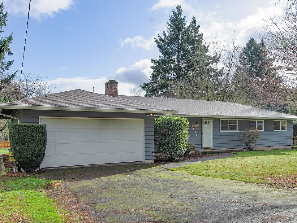 Walking in this fantastic one level, you fall in love with the spacious living rm, gleaming hardwoods & cozy fireplace. Dining room is between the family rm, w/slider to deck and pass-through airy kitchen with pantry. Master suite w/walk in shower. Vinyl windows, newer roof. Rare shy 3/4 acre lot allows for endless possibilities as well as land division. Desirable location near Bridgeport Village, Main St Tigard, freeways, transit & more! ** Hurry to this one! **