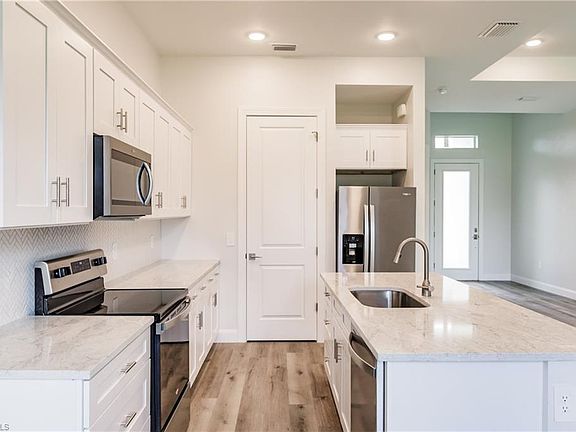 New construction single family home in Buckingham Park with no HOA fees. Completion August 2022. 3 bed + den, 2 bath home with 1714 sq. ft. under air and over 2400 total sq. ft. Excellent floor plan - very open and bright. Featuring 10’ ceilings throughout with tray ceiling in great room. This home includes PGT impact resistant windows and sliding glass door, as well as an 8’ impact glass main entry door that allows for lots of light in foyer. This home also features 8’ interior doors throughout. The kitchen features a large island with white painted wood shaker cabinets with soft close doors/drawers, as well as quartz counters and LG stainless appliance package. Both bathrooms feature tile shower and tub with white painted wood shaker cabinets with soft close doors/drawers and quartz counters. Master bedroom features double walk-in closets. Generous size bedrooms make for the perfect house for a growing family. Flooring throughout the home is upgraded vinyl laminate floor. Nice size backyard, which room for future pool.