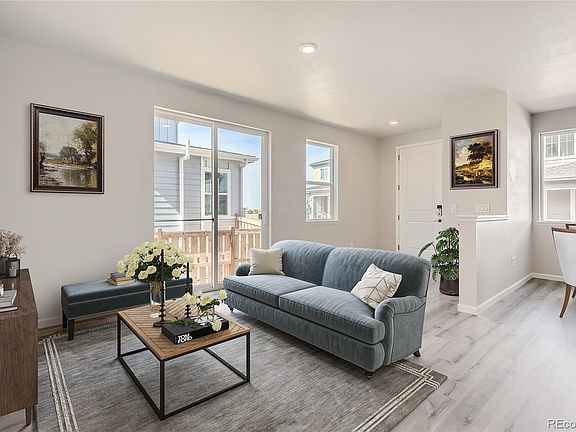 The Blue Spruce plan features a mix of private and entertaining spaces. On the main floor, an open-concept layout boasts a well-equipped kitchen with wraparound countertops and a large island, overlooking a dining and great room. Complete the main level with a mud room and 2-bay garage, access to the unfinished lower level. Head upstairs and you'll find two secondary bedrooms—sharing access to a full hall bath—a laundry room, and a primary suite. The primary suite impresses with a wide walk-in closet and a private bath, complete with dual vanities and a walk-in shower. Stunning Paired Home in Highly Desirable NW Parker – Ultra Convenient Location! Welcome to modern living in this beautifully designed paired home located in one of Parker’s most sought-after new communities! Offering convenience, this home is just minutes from Lone Tree, I-25, and E-470, making commutes to Denver, and DTC a breeze. Step inside and be greeted by an abundance of natural light streaming through expansive windows, highlighting the home’s grey cabinetry, elegant quartz countertops, and open-concept layout. Whether entertaining or relaxing, this thoughtfully designed space offers effortless flow between the kitchen, dining, and living areas. Upstairs, retreat to your luxurious primary suite, a true sanctuary featuring spa-like finishes and a spacious walk-in closet. A cozy loft offers the perfect flex space for a home office, media area, or reading nook. Enjoy low-maintenance living with a fenced-in side yard—ideal for pets, gardening, or soaking in the spectacular Colorado sunsets. A full basement provides incredible storage or the opportunity for future expansion. This home is the perfect blend of style, convenience, and comfort in a location that can’t be beat. Don’t miss your chance to own this incredible home in one of Parker’s hottest communities! Photos are not of this exact property. They are for representational purposes only. Please contact builder for specifics on this property.