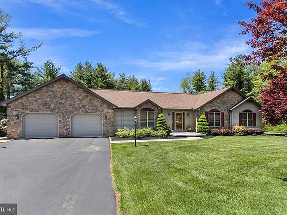 Opportunity to own a custom-built rancher on an acre not more than five minutes from I-83 won't come along often. This stone front rancher built in 2005 is better than new. It's surrounded by lots of green space, including beautiful landscaping, and serene neighboring farmland. Lots of room for guest parking in driveway with a turn around. The backyard boasts of a light pole from Baltimore City to light up the yard for entertaining outdoors after dark. A large patio has plenty of room for outdoor parties and sitting and retaining walls. Indoors, the 4 season sunroom transitions beautifully to outdoor spaces via floor to ceiling windows with remote controlled electronic solar shades. Once the weather turns cooler, heat the room with the new pellet stove. Feel like you're outdoors but enjoy the comfort of Cathedral ceilings and easy to care for Pergo flooring. Step inside to the living room, also with Cathedral ceilings and fan. The kitchen features a pantry cupboard with slide-out drawers, a gas stove with a griddle in the middle, and a new Kitchen Aid dishwasher. The counter-height peninsula provides a place for casual meals and opens the kitchen to the living room. Host holiday meals in the dining room with the large window overlooking the front yard and farmland. The three bedrooms feature new hardwood flooring. The primary bathroom was renovated in 2021 to include a locker room shower with real stone flooring, lots of glass, granite capstones, and a matching granite countertop and sink. Access the walk-in-closet through the bathroom. The primary bathroom also has a linen closet for extra storage. The main bathroom is spacious with plenty of natural light and the flooring in both bathrooms is tile. Welcome your guests into your home in the large foyer. The foyer has a coat closet and lots of natural light from the sidelights. There's another closet around the corner from the foyer for extra storage, which is also plentiful throughout the home. While away from home, conveniently view your property on your cell phone. Head down the stairs from the kitchen into the spacious, finished lower level which has high volume ceilings, lots of light from the windows and French doors leading out to the patio and deck area. Enjoy movie nights with the built-in surround sound and cozy up with the gas fireplace. This area also boasts of a full bath, laundry room, and lots of closets and storage including an unfinished room complete with shelving. The additional finished bonus room would make a great playroom or office separate from the family room. Last but not least, you don't get short-changed with the 28' by 27.5' garage designed by an owner who thought of everything including oversized garage doors to accommodate full-sized vehicles, pellet stove heat, stainless-steel slop sink, pull-down stairs to attic access, and lots of workspace. Store your yard tools in the backyard shed. Don't miss a beat and keep the entire house running with the whole house generator during any power outages. If you are a buyer who thinks you need a newly built home, better check this one out and notice the many, many extras which do not come with new construction. Be sure to check out the attached documents for details.