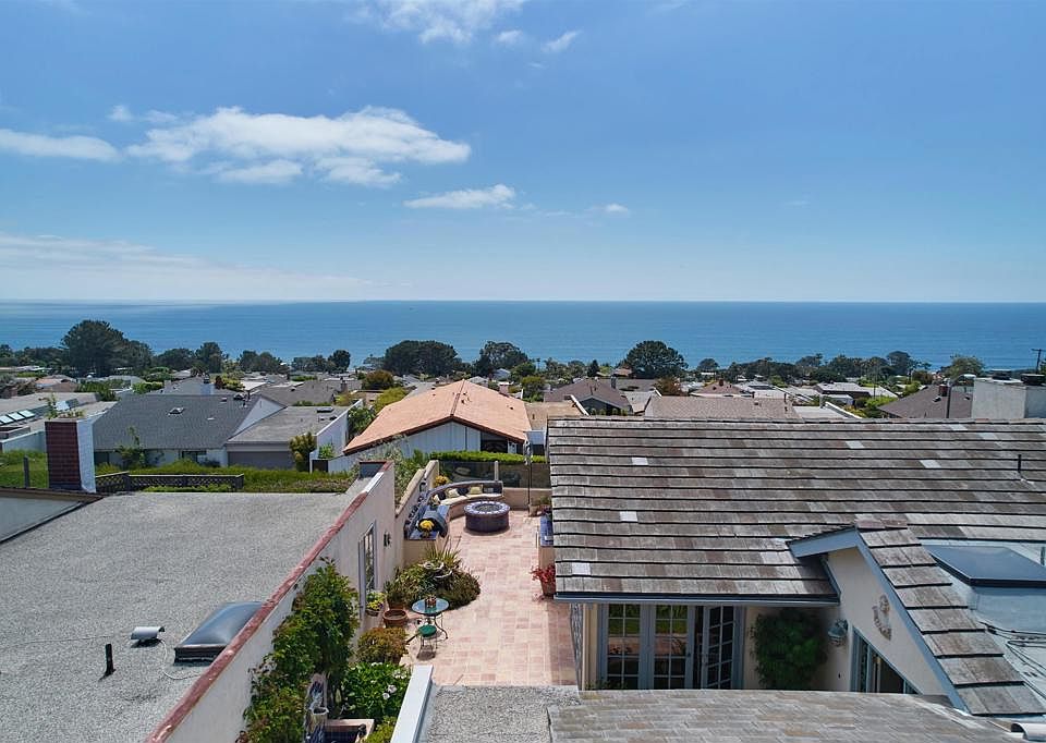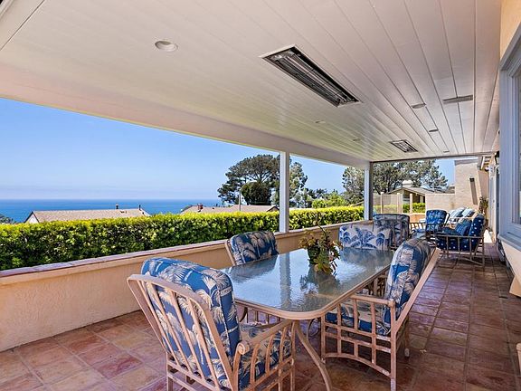 Single-story Del Mar home with breathtaking 180-degree ocean views! Perched on an elevated corner lot in the coveted Riveria Del Mar neighborhood, this rare coastal treasure epitomizes Southern California living. Enjoy panoramic vistas from La Jolla to north of Catalina Island, all while basking in unparalleled privacy w/ no neighbors directly in front or behind. An expansive courtyard captures the stunning surroundings, welcoming you into this dream coastal oasis. Inside, abundant natural light floods the open-concept living areas w/ high, vaulted ceilings, enhancing the spacious layout. French doors envelop the main living areas, inviting gentle ocean breezes & seamlessly blending indoor-outdoor spaces to create a perfect setting for unforgettable gatherings amidst awe-inspiring Pacific Ocean views. Living room features high ceilings & cozy, wood-burning fireplace, offering a warm & inviting ambiance. Enjoy sit-down ocean views from the kitchen & living room, adding a touch of bliss to every moment. Primary suite, with timeless ocean views, is a luxurious retreat w/ its own fireplace, French doors & spa-quality BA w/ spacious walk-in shower, dual shower heads, soaking tub & oversized walk-in closets. 2 guest BRs, an office/optional 4th BR & 1.5 BA complete this magnificent layout. The expansive entertaining area boasts a covered patio w/ retractable screens, heaters, lighting & outdoor speakers. There is also a built-in BBQ, built-in firepit, wine refrigerator & spa—perfect for enjoying the beautiful coastal climate. Located moments from the vibrant dining scene of Del Mar Village, this exclusive slice of paradise offers a rare opportunity to indulge in beachside living at its finest. Discover your dream home in this quiet, serene neighborhood & experience the best of coastal luxury. Owned Solar.