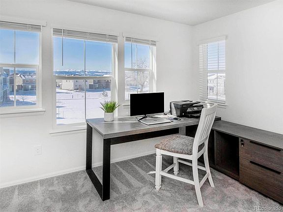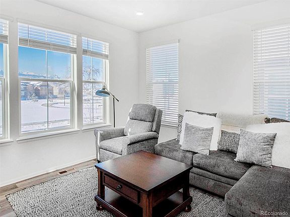 Stunning home with pride of ownership throughout. Home is situated on one of the best lots in the community. Snow capped views of the mountains are an added bonus. Sunny and bright open floor plan. Amazing open kitchen with granite counters and stainless steel appliances. On the main floor there is a perfect space for a den or home office. The lower level is unfinished and is the perfect canvas for finishing with your own personal touches. The upper level primary bedroom suite is oversized with plenty of room! Enjoy the secondary office upstairs with amazing sweeping snow capped mountain views. Spacious 2 car garage with plenty of storage. This home is the Vibrant Model by Lennar. It was the most upgraded home series in the community and has many more bells and whistles than the other homes recently sold in the community. Home is located directly across the street from the park and within minutes of I-25 for an easy commute!