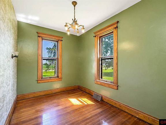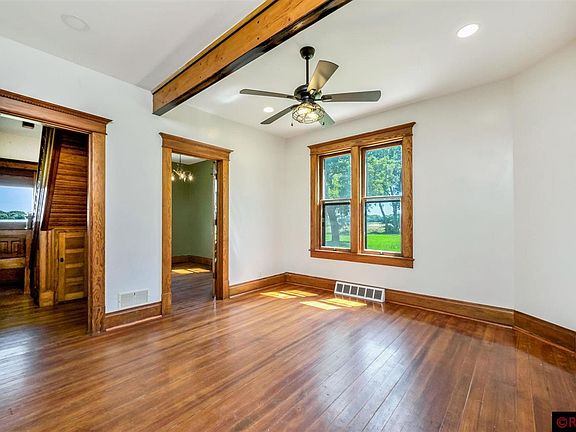 Welcome to this stunning 4BR/2BA farmhouse sitting on 7.46 acres that perfectly blends classic charm with modern updates. The spacious and modern kitchen features an island and updated appliances that stay with the home. Off the kitchen, you'll find a convenient main floor laundry room and access to a walk-up attic with great potential. The elegant dining room boasts high ceilings, natural wood, and built-in storage, adding a touch of sophistication. On the main floor, there is also a 3/4 bathroom and a bedroom for added convenience. The large living room, with its cozy wood stove, is perfect for warming up on winter nights. Ascend the beautiful grand front staircase to discover three additional bedrooms, a storage room, and an updated full bathroom. The basement, with a stone foundation, has been tuck-pointed, new drain tile system, and new concrete, for dry storage and offers ample space for a workshop. Don’t miss the opportunity to own this beautiful farmhouse with so many updates!