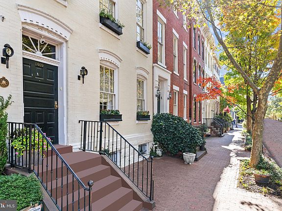 The epitome of Georgetown elegance, 1409 31st Street NW is the embodiment of luxury city living. A semi-detached home on a verdant, tree lined street a mere block to Wisconsin Avenue, the townhome was originally constructed at the turn of the 20th century. Continual improvements and additions over the years have expanded the home to a spacious 4,876 finished square feet of state-of-the-art design, top-of-the-line finishes, and painstaking workmanship while retaining the classic Georgetown ethos. The cream colored facade sets an elegant tone, accented by arched windows and impeccable detailing. Inside, the tone is mirrored by a dignified reception foyer housing the grand staircase. Adjacent is the open concept formal living and dining room. Exquisite millwork and dual roaring fireplaces accent the space, spanning a full 31 feet in depth yet still flooded with natural light from both ends. A formal powder room and dual coat closets bisect the transition between formal and informal spaces. Central to the latter is the well-appointed chef’s kitchen, featuring furniture-grade glass inset cabinetry, granite countertops, and a comprehensive suite of built-in commercial grade appliances including an industrial strength range. A stunning double-height gallery leads to the great room, where a spectacular wall of intricately arched windows allows copious amounts of natural light and wooded views glimmering off of the chandelier. Twin arched glass doors lead to the rear terrace – a true sanctuary in a central urban location. A combination of lush landscaping and extensive hardscaping, the walled and hedge-lined flagstone patio enables seamless lounging, dining, and entertaining al fresco shrouded in total tranquil privacy. At the top of the stair landing is an upper level reading nook, complete with built-in bookcases and a fireplace, overlooking the gallery and great room below. A convenient laundry room is nearby. The remainder of the second level is dedicated to the primary suite, spanning the entire width of the home and overlooking 31st Street below via triple windows. A private fireplace, deep gallery style walk-in closet, and fabulous bath with exquisite millwork, steam shower, and cast iron tub complete the retreat. On the top level are two additional bedrooms, each generously proportioned and featuring private fireplaces, as well as a shared hall bath. Entering the lower level, the staircase descends into a walk-through wine cellar, framed on both sides by stylish custom shelving. An additional bedroom suite with walk-in closet greatly enhances the home’s multigenerational flexibility. Opposite the wine cellar are a thoughtfully placed wet bar, second laundry room, and dedicated storage room in addition to a hall of closets. A large walk out recreation room at the rear completes the lower level. With its blend of striking in design, abundant in space, and sumptuous in finishes, 1409 31st Street NW represents the very peak of both Georgetown and amenity-rich city living in one of the country’s most sought-after locations.
