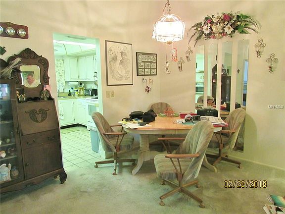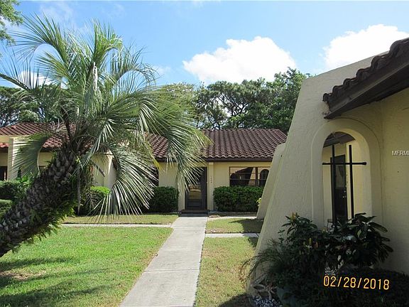 Two bedroom - two bath villa located in a 55+ community. The living - dining area features cathedral ceilings and has sliding glass doors which lead to a large glass enclosed Florida room, which is under air, plus includes a storage closet. Outside the Florida room is a patio with a large greenbelt area - very quite and private. Split floor plan with the master bedroom/bath suite in the rear. Washer and dryer closet is in hallway. Pulldown stairs to attic space. Newer A/C and water heater, replaced 7/16. Carport. Community has recreation building, heated pool, sauna, fitness equipment, shuffleboard and tennis courts. Nice gazebo on the lake behind the clubhouse. Close to shopping and about six miles to the beach.
