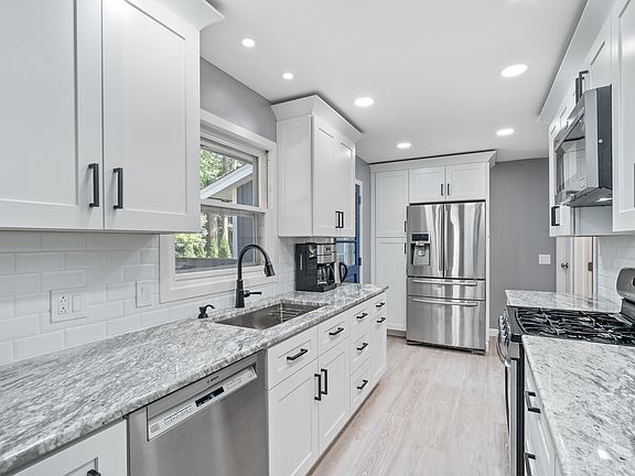 This beautiful 3BR + office (or 4 BR), 2.1 bath two story home on a third of an acre has everything you could wish for. Remodeled throughout and located in desirable Loch Lomond, you will be welcomed into an open concept living space featuring hardwood floors and windows that make the home so bright with natural light. The brand new kitchen boasts 42" white shaker style cabinets, granite, and stainless steel appliances. The combined kitchen, dining room, and family room with fireplace opens to a great deck and huge back yard that makes the space perfect for entertaining. Work from home with ease in the first floor office or convert this space into a first floor bedroom. Other first floor features include a recently updated bath and mudroom off of the garage entrance. On the second floor you'll find a large master suite with walk in closet and full bath, as well as two other generously size bedrooms and another full bath with tub. The basement is finished and provides additional space that could be used for a combination of a rec room, kids playroom, office, and workout room. There is also a separate storage room in the basement. This fabulous location is privately nestled in the subdivision that features a 75 acre private lake, 2 private beaches, fishing, playgrounds, gardens, and swimming plus access to local baseball fields and a water park. Brand new siding, roof, soffits and kitchen mean this home is turn key, move in ready, and had many recent upgrades. Please see the additional information tab for a full list of improvements