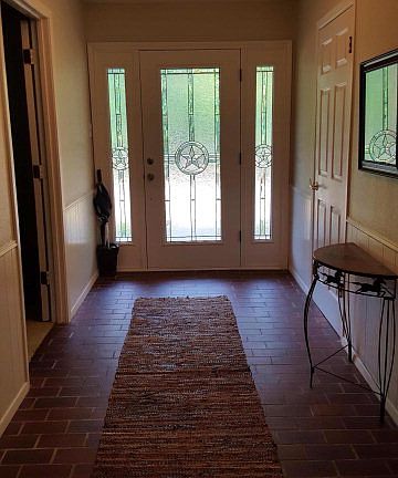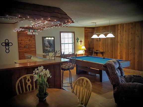 Spacious Brick home close to town on 12.91 acres of land. Front yard is city and back yard and land is considered county. So you can enjoy burning or shooting. Lots of Deer. New Appraisal & Survey. Home has new roof and seamless gutters. Gameroom or second living room with bar space and kitchen area, office, large utility room and spacious bedrooms with walk in closets. Kitchen is ideal for entertaining and has new stainless oven & stainless refrigerator. Marble baths w/showers. Cathdral ceiling, wood biems in living room with woodburning fireplace and built-in shelving. Land all fenced & cross fenced with 3 ponds. Has barn/shed and small cabin. Huge fenced back yard, above ground pool with slide and deck. Pecan trees in backyard. Must see!