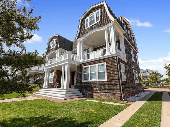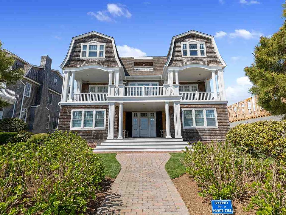 This unique beachfront home with an open floor plan is designed for entertaining! Located at Admiral Beach Estates, panoramic ocean views abound from the great room that spans the entire second floor and offers a timeless architectural design. Features of the home include expansive oceanside and rear decks; detailed millwork; hardwood floors; and stone/tile details throughout. Upon entering the home, the grand foyer way leads to an escalating dual staircase. The first level offers two suites, each with private bathroom; two additional bedrooms that share a bathroom; laundry room; mudroom; and two-car garage. The second level landing incorporates a powder room and doors that lead to the elevated rear sundeck. The all-encompassing great room is located on the second level and includes a chef's kitchen; breakfast area; dining area; living room with fireplace; and three sets of doors that lead to the oceanside deck. The third level includes the master suite with sitting area, private bathroom, and walk-in closets; guest suite with private bathroom; office; and laundry room. New memories await in this ultimate Cape May retreat.