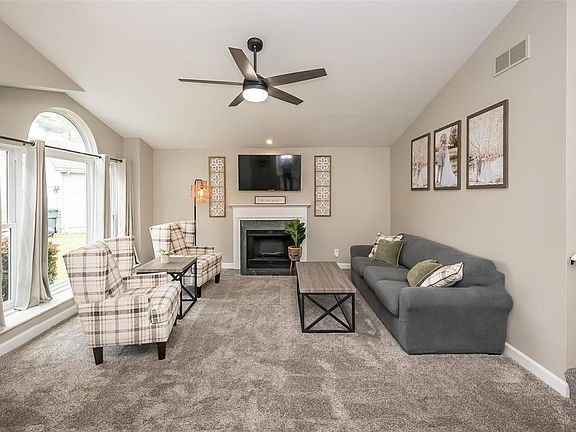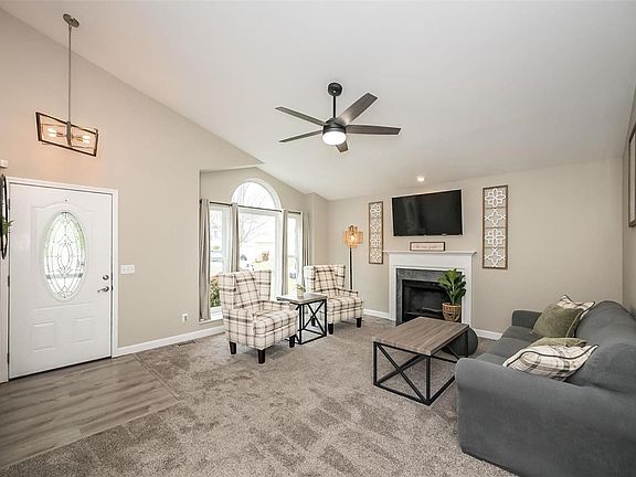 Sophisticated multi-level home in ideal Cottleville location. Open floor plan features light-filled rooms with soaring ceilings, wide plank flooring, detailed trim work & contemporary fixtures. Inviting covered porch entrance leads to vaulted living room with wide full-height window & marble fireplace and updated kitchen with white beadboard cabinetry, granite countertops, premium stainless steel appliances & ½-glass door that opens to patio. The primary bedroom offers an appealing retreat with walk-in closet & ensuite bath. 2 Additional bedrooms & hall full bath complete the 2nd floor living quarters. Lower Level entertainment space includes spacious recreation room & ample storage space. Situated on a .32-acre lot with level backyard with privacy fencing & expansive patio. Conveniently located just a short walk or cart ride away from downtown shops & restaurants with easy access to Hwys 94 & 364.