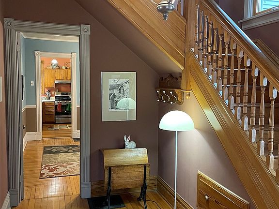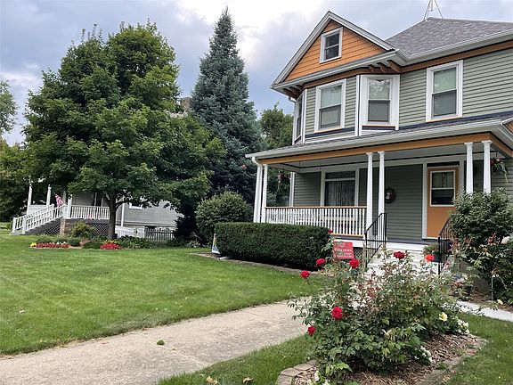 Welcome home to a classic Prairie style home with an inviting front porch. The home includes 2,374 square feet on the first two floors with an additional 587 square feet in the lower level (basement). The foyer leads to an elegant staircase, with a front room, a living room with a wood-burning fireplace, and a formal dining room. There is beautiful woodwork throughout the home and the hardwood floors are stunning. The spacious kitchen opens to a screened porch and backyard. The second floor has 3-4 bedrooms, an office, and a full bathroom. There is a mudroom, a second staircase leading upstairs from the kitchen, and a fenced in backyard. There is also an unfinished walk up attic. The basement has extra living space, including a bedroom and three-quarter bathroom, and recent updates include a new foundation, electrical panel, water and radon mitigation system in the basement, plumbing, and roof and gutters in 2023. The oversized detached two car garage has a fast charging EV plug. The care given to this property can't be overstated. The attention to detail when painting the exterior of the home in 2019 and front porch are outstanding.