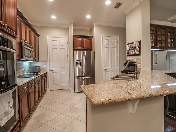 - Interior Features: Ceiling Fans(s), Master Bedroom Downstairs, Crown Molding, Walk-In Closet(s), Solid Surface Counters, Dry Bar, Tray Ceiling(s)