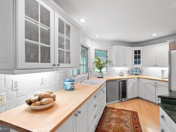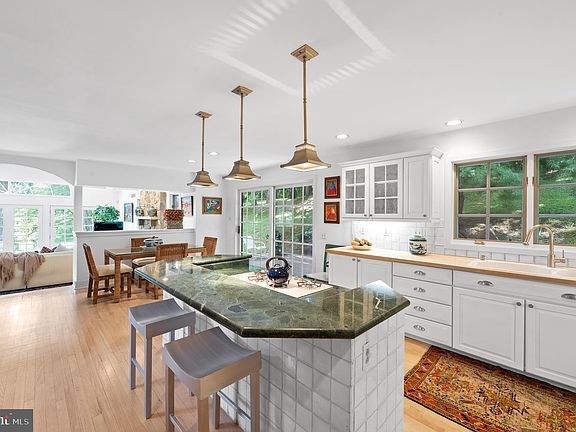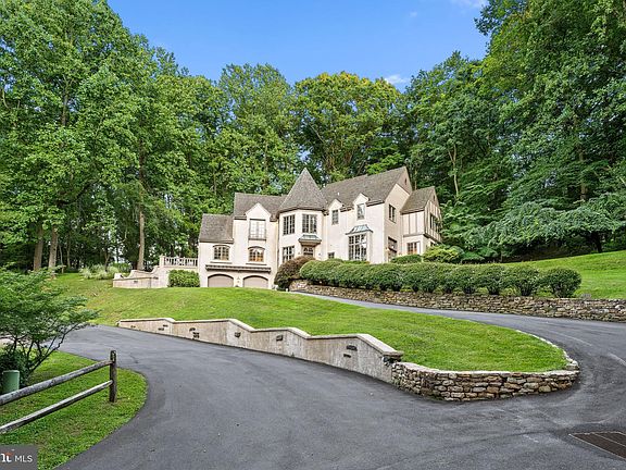 This truly exceptional Modern French Normandy home is in pristine condition blends an open, modern floor plan with classic charm and quality craftsmanship. Beautifully maintained rich hardwood floors are found throughout. It is wonderfully positioned in a scenic, quiet setting in a family friendly cul de sac surrounded by natural beauty. The flagstone entry hall provides a gracious introduction and warmly welcomes you home. The living room features a marble gas fireplace and overlooks the two-story wood paneled library accented with decorative moldings. A spacious and bright dining room located adjacent to the kitchen has great flow for entertaining. Highlighted by a beautiful center island with counter seating and top-quality appliances, the kitchen is both beautiful and functional, while the breakfast area overlooks the grounds and provides outside access to one of two decks. The kitchen opens to an expansive family room which has a soaring ceiling and a palladium window that provides breathtaking views of the grounds. A fireplace with stone surround brings warmth to the space and features a wet bar area ideal for entertaining. A black granite powder room off the foyer completes the main floor. A curved stairway offers an airy connection between each level and ascends to the second floor. The spacious primary suite has a high tray ceiling and two large walk-in closets. The updated primary bathroom comprises a double vanity, an Italian marble steam shower, an inviting Bain ultra-Jacuzzi tub with chromotherapy feature, and a skylight that brightens the space with natural light. Three additional bedrooms are generously sized and include abundant closet space. One includes its own updated private bathroom; the other two bedrooms are connected by a shared updated bathroom. A few steps down from the main floor is the finished lower level which features a recreation/playroom area and an additional bedroom suite/office space with an attached full bathroom. This level provides access to the oversized 2-car garage. The home's convenient location is in close proximity to all major transportation routes, Center City Philadelphia, restaurants, shops, entertainment, and award-winning Lower Merion Township schools.