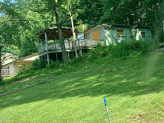 This seasonal lake cottage located on a dead-end road is a true diamond in the rough! This property is just waiting to be transformed into a truly amazing lake home or rental getaway. It seemingly has good bones & needs the TLC it deserves! The lake views from the cabin & the 300 square foot gazebo-style deck are really beautiful! The dock is believed to be on a string visible from the property which offers direct, easy access! The floor plan currently has what could be an open-floor concept to include kitchen, living & dining areas with an existing brick fireplace. There are 2 rooms on the back side of the house that would be ideal as bedrooms and there's a designated space for what was once a full bathroom. There are no useable windows, doors, appliances, or cabinetry & little to no working fixtures. City water & electric are available at the road. Information re: a septic system or holding tank is unknown as of listing date. Property is being sold "as-is, where-is" at time of showing. Price and condition of the home may vary after listing date as the owner is currently moving forward with renovations that may result in price increases. Please reach out to listing agent for any other information / questions. Dock information, square footage, lot size/dimensions, etc. to be verified by buyer if important to buying decision. Property is Agent Owned.
