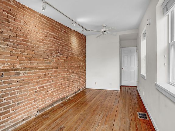 Location. Location. Location. Welcome to 1409 Covington Street. This classic 1860 Federal Hill row home exudes charm. Ready to welcome its new residents, this home will enchant you with its history. As you enter the front door, you will find the spacious, warm living room. Note one full wall of built ins, and another full wall featuring exposed brick. As you proceed through the home you will note the original hardwoods from over a century and a half ago; they remain intact, and exquisite. An angled staircase separates the living room and dining area. This space features exposed brick and a charming window. Off of the dining area is the gourmet galley kitchen with dual sinks, gas cooking, white cabinetry with undermount lighting, granite countertops, another charming window, and so much more. Off of the kitchen is a sizeable mudroom area and a full bath. An exterior door leads you outside to your very own off street parking space. The upper level of the home features a primary bedroom with an abundance of natural light, plenty of closet space and an eclectic ceiling fan. The upstairs hallway is flooded with sunlight from the perfectly positioned skylights. The upper-level bath is simply stunning, and features dual sinks, more than ample white cabinetry, a glass tub enclosure, and designer deep blue tile floors. A full laundry suite is on the upper level, as well as an additional bedroom with glass doors to the first of two outdoor decks. The rooftop deck offers a three hundred and sixty degree view of the city.